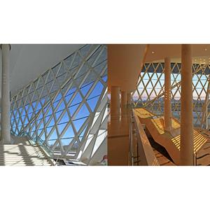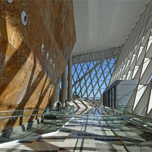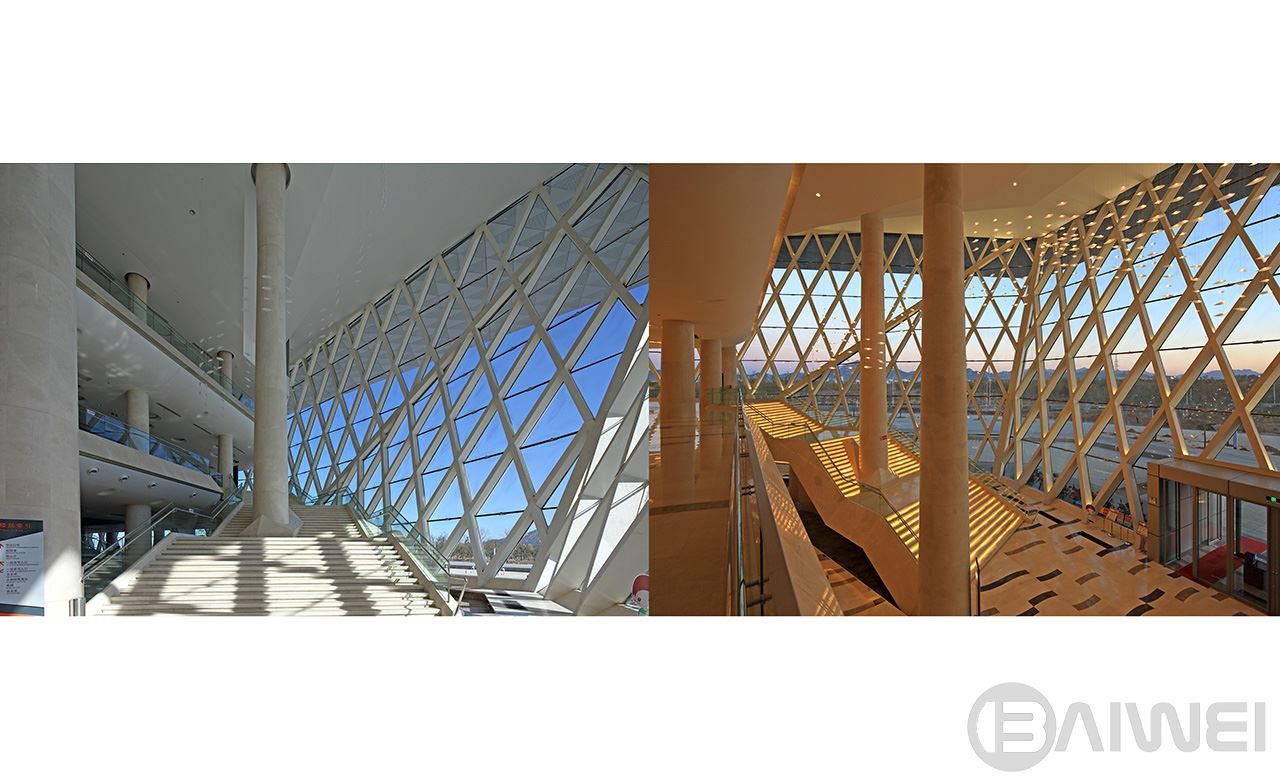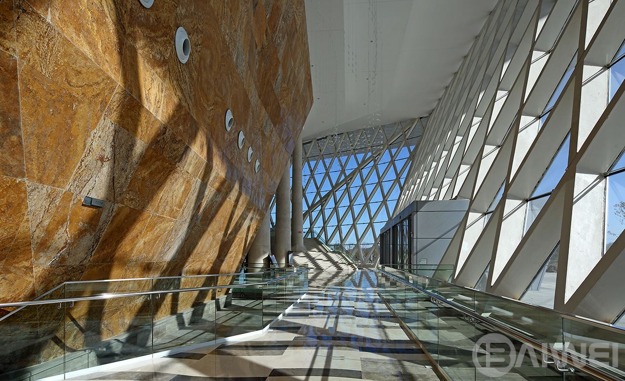 工程包括大劇院、電影廳(A區(qū))和圖書館、書城、展廳(B區(qū))以及群眾藝術(shù)中心(C區(qū))三大部分。設(shè)計理念為賞雄姿幽韻,悟全真道源,依海觀山,文化領(lǐng)航。設(shè)計策略為基于集約化設(shè)計思想的文化建筑綜合體,多元復合的功能構(gòu)成,交融共生的空間塑造,傳承文脈的場所建構(gòu)。技術(shù)方面基于氣候和場地具體環(huán)境,通過建筑體型和布局設(shè)計,結(jié)合綠化布置,創(chuàng)造利于自然通風、自然采光和隔音降噪的先決條件,主動技術(shù)與被動技術(shù)的集成應用,優(yōu)選的建筑材料和優(yōu)化的結(jié)構(gòu)體系,是建筑綠色化的保障。投2013年承接“第十屆中國藝術(shù)節(jié)”。牟平文化中心已成為新世紀牟平區(qū)的標志性建筑。為群眾休閑、娛樂提供了高標準場所,成為展示城市魅力和城市形象的一張名片。