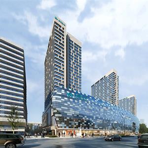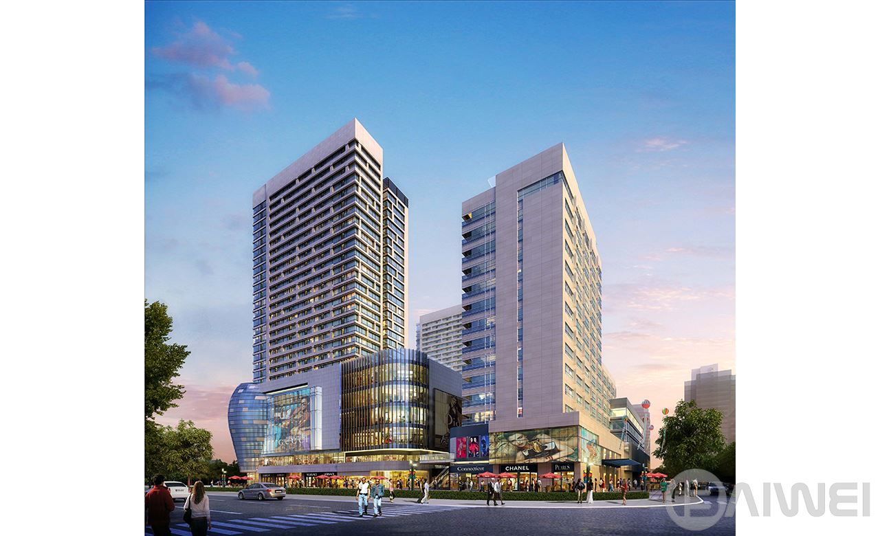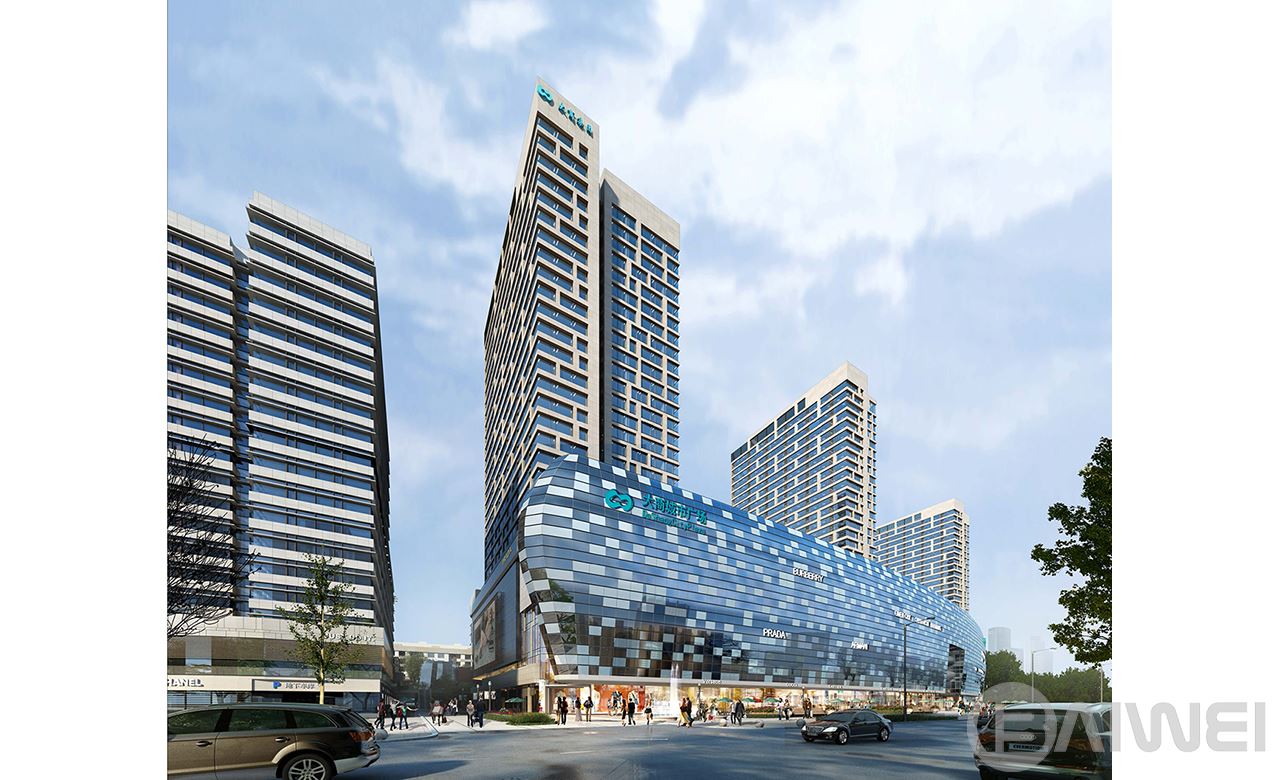 作為煙臺(tái)市芝罘區(qū)核心商業(yè)區(qū)集商業(yè)、商務(wù)、居住為一體的綜合體項(xiàng)目,滿足人們衣食住行 一體化的”低碳、樂活”的居住新需求。項(xiàng)目規(guī)劃結(jié)構(gòu)以新瑪特及麥凱樂商業(yè)為中心軸線,結(jié)合商鋪,形成東西走向的商業(yè)街, 使大海陽路、西大街、新建巷及青年路的人流互動(dòng),增加商業(yè)的可達(dá)性和趣味性。建筑外觀采用現(xiàn)代主義建筑風(fēng)格。塔樓、住宅及商業(yè)區(qū)既相互呼應(yīng),又各有特色。 新瑪特、麥凱樂商場(chǎng)主要以石材、金屬板及玻璃幕墻為主要材質(zhì),通過材質(zhì)間強(qiáng)烈的對(duì)比,勾 勒出西大街與大海陽路獨(dú)特的商業(yè)氛圍;塔樓部分選用了與商場(chǎng)顏色接近的真石漆,保持了建筑整體風(fēng)格的統(tǒng)一與延續(xù)。