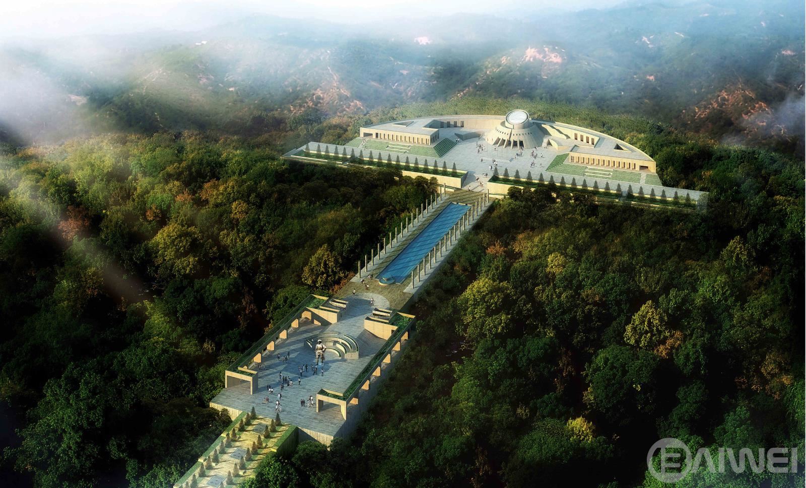 本項目設(shè)計吸收了國內(nèi)外陵園建筑和祭祀建筑的可借鑒的因素,把設(shè)計的重點放在軸線,序列和節(jié)奏的變化上。主要的軸線 安排在現(xiàn)有的通向紀念碑的五百米長的道路的位置上,依次展開入口廣場—追思大道—楊子榮廣場—思源之路—紀念廣場 —紀念館4觀景臺4紀念林4烈士墓等內(nèi)容。
