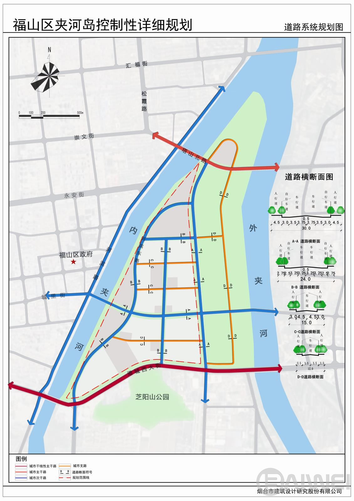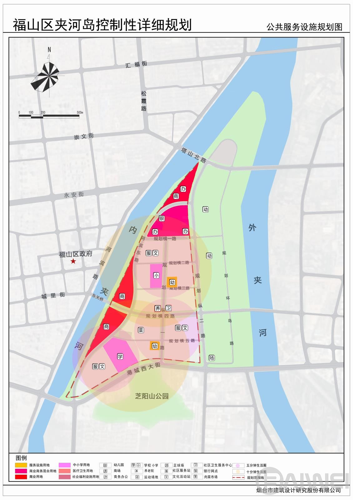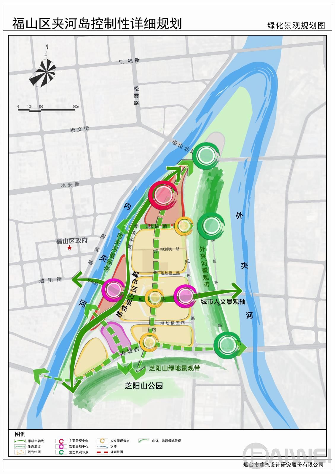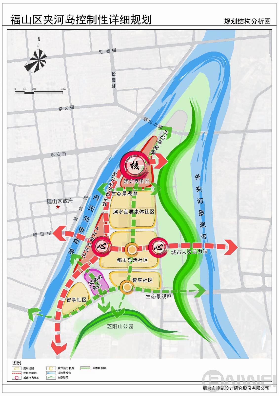 本項目位于煙臺市福山區(qū)東部夾河新城片區(qū),規(guī)劃范圍西至內(nèi)夾河?xùn)|岸,北臨內(nèi)外夾河交匯處,東接水源地保護(hù)線,南至港城西大街,總用地面積約1.05平方公里。規(guī)劃以生態(tài)功能為依托、集智慧創(chuàng)新、文化功能于一體形成煙臺市西南商業(yè)中心、煙臺生態(tài)魅力智慧島;集商業(yè)商務(wù)、文化創(chuàng)意、旅游休閑、生活居住四大功能為一體的煙臺市夾河新城中心。